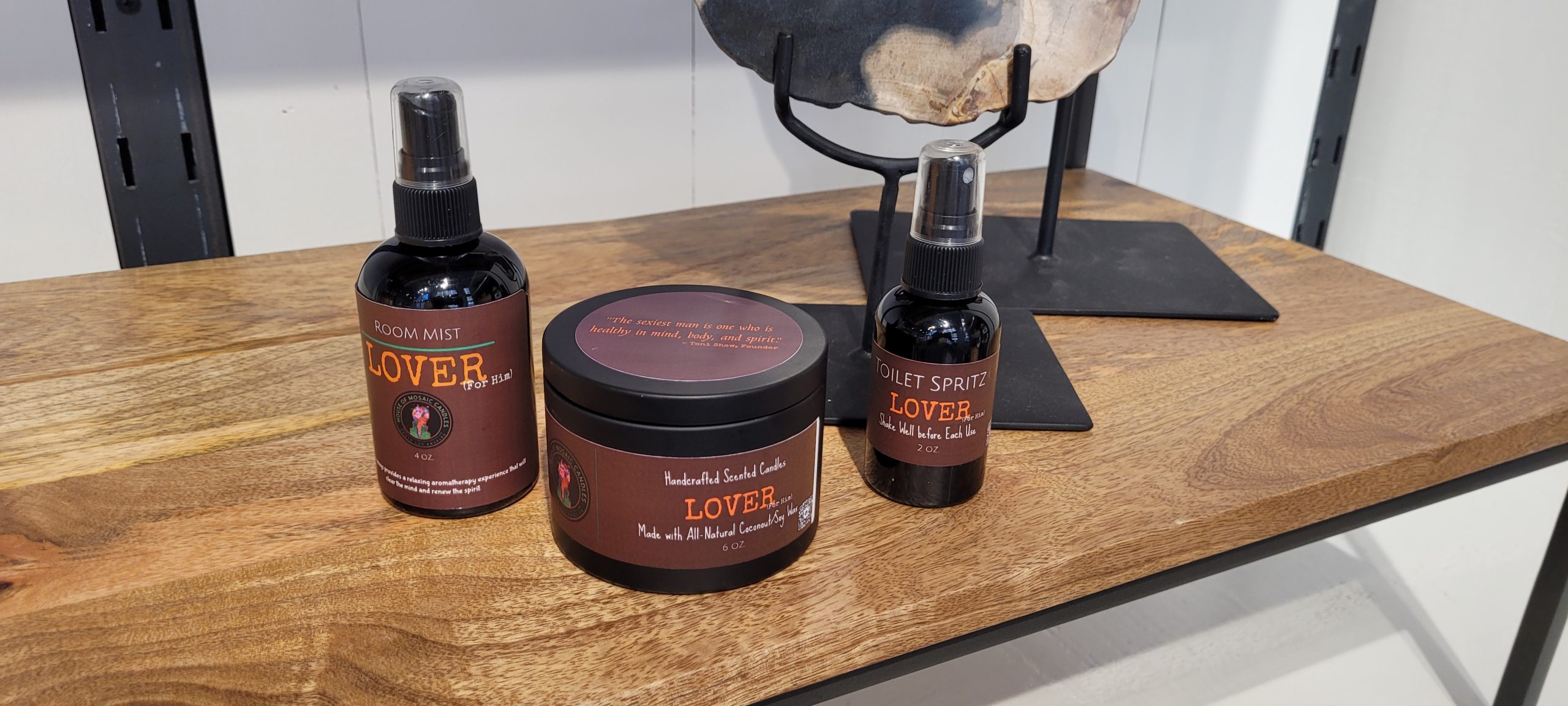 Designed and curated especially for him. This bundle includes a 6 oz. massage candle, 4 oz. room mist/body spray and 2 oz. toilet spritz beautifully packaged in our signature gift box.